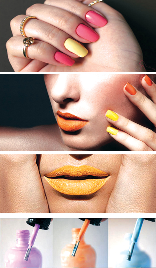 Aplique cores complementares de esmalte nas unhas e combine o batom com uma delas! Fica tudo de bom.