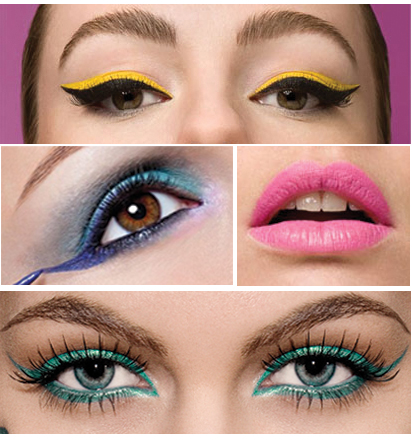 Uma das últimas tendências de maquiagem para esse 2012 são os delinhadores coloridos! Aposte em cores vibrantes e em tons de neon como: azul, laranja, rosa e amarelo! O efeito continua o mesmo do preto gatinho e as cores cintilantes também estão com tudo! Aliás, brilho nunca é demais, né?!