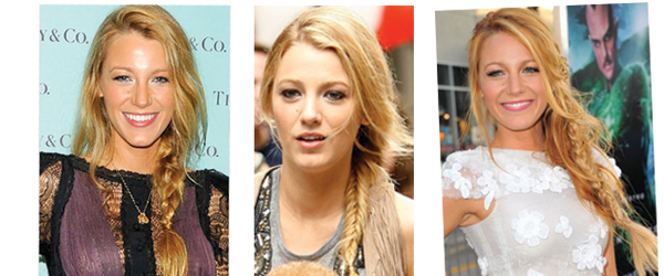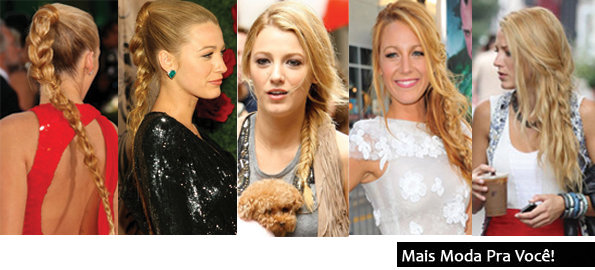 Olha o exemplo da Blake! De dia ela usou uma trança escama de peixe, feita com mechas bem fininhas e bem apertadas, criando um visual totalmente despojado. Já à noite, ela ousou um pouco mais na trança, com efeito meio frouxo e com a franja meio presa a um aplique de flor dourada, trazendo sofisticação ao look. Ficou tudo de bom.