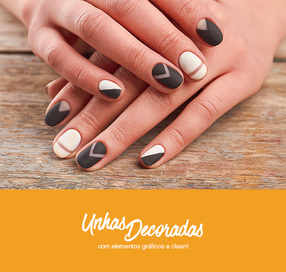 Esse estilo todo moderninho e elaborado deve trazer símbolos, listras, desenhos geométricos e diversas outras opções modernas à esmaltação convencional. Para ficar por dentro dessa nova tendência, confira algumas dicas de como decorar suas unhas com elementos gráficos e clean: