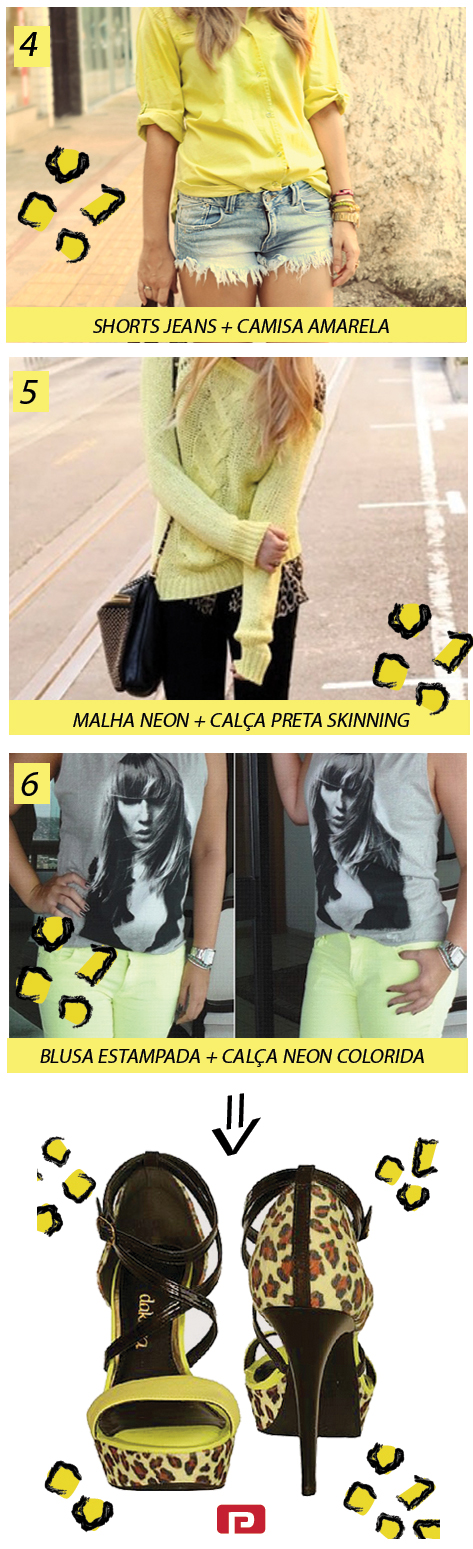 Animal Print + Neon é uma tendência que está dando o que falar entre as fashionistas. Agora, a pergunta que não quer calar, é: “Como criar o look ideal com essa moda hiper colorida!?” A dica é sempre dosar as peças mais estampadas com outras lisas e de tecidos finos. Confira o exemplo 1. A saia estampada ganhou destaque e a camisa de seda transparente não deixou o look “ficar vulgar”.