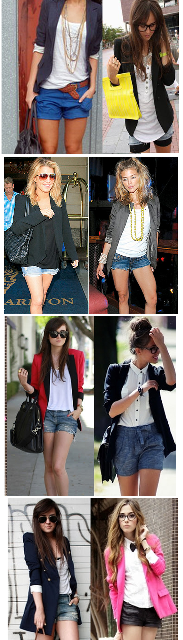 Invista no look do shortinhos com blazer casual. Para adaptar a tendência a estação mais quente do ano, opte por tecidos mais leves. Blusinha básica com shortinhos boyfriend não tem erro. #Aposte