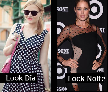 Quer um visual mais divertido? Quebre o look com acessórios coloridos ou use estampas com tamanhos de bolinhas diferentes! O look de bolinha pode ser usado em diversas ocasiões, no estilo “lady like”, tanto para o dia quanto para a noite! Basta você dosar na delicadeza do tecido e no estilo da roupa! Confira exemplos de looks para o dia e para a noite!
