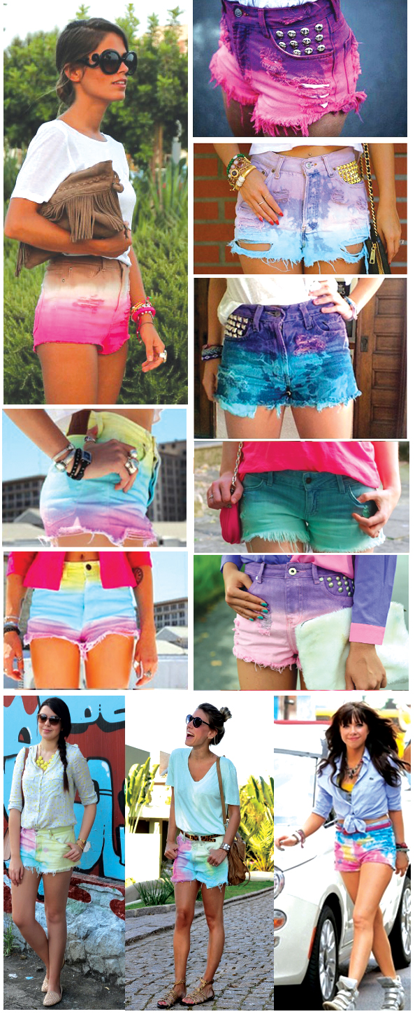 Shortinhos neon no verão, é super tendência. Mas, mais que isso, só o short esfumaçado com diferentes cores. Essa moda é também conhecida como Dip Dye, por isso, grave bem esse nome para arrasar com tudo nessa temporada!