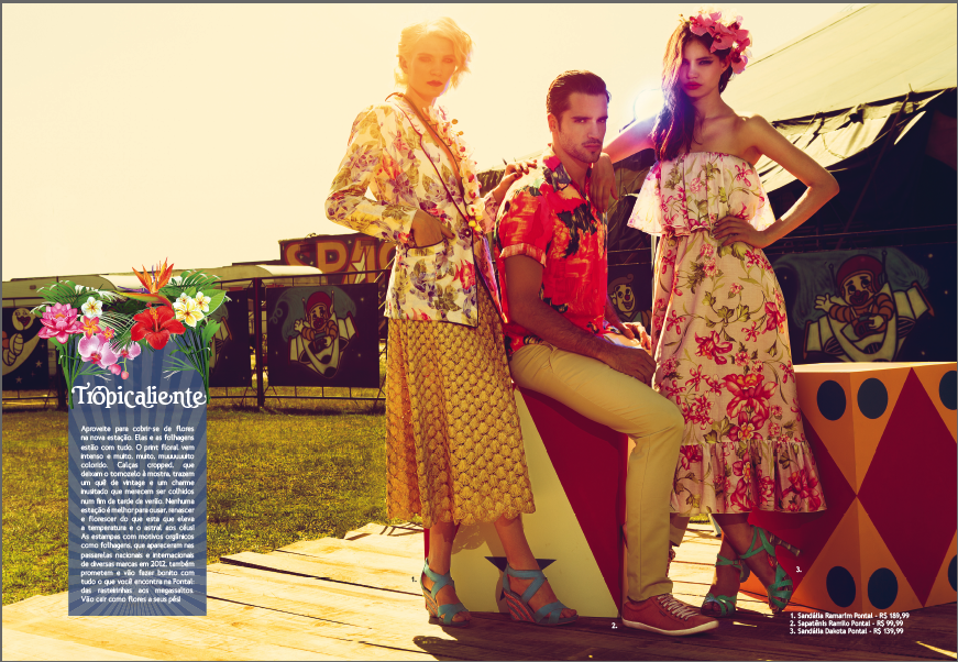 Aproveite para cobrir-se de flores na nova estação. Elas e as folhagens estão com tudo. O print floral vem intenso e muito, muito, muuuuuuito colorido. Calças cropped, que deixam o tornozelo à mostra, trazem um quê de vintage e um charme inusitado que merecem ser colhidos num fim de tarde de verão. Nenhuma estação é melhor para ousar, renascer e florescer do que esta que eleva a temperatura e o astral aos céus! As estampas com motivos orgânicos como folhagens, que apareceram nas passarelas nacionais e internacionais de diversas marcas em 2012, também prometem e vão fazer bonito com tudo o que você encontra na Pontal: das rasteirinhas aos megassaltos. Vão cair como flores a seus pés!
