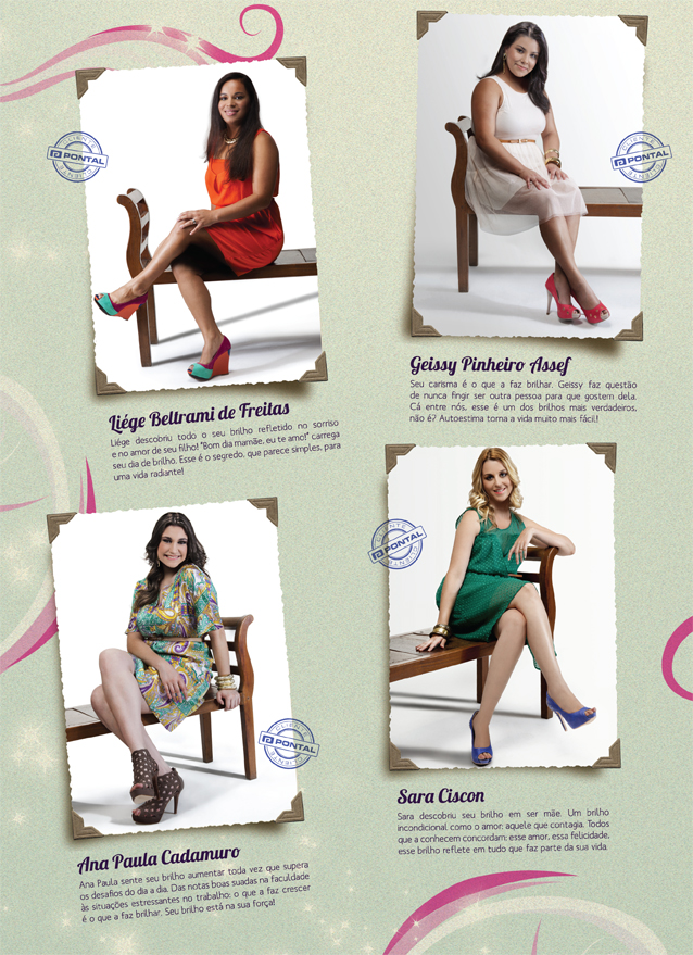 Na edição passada da Revista Pontal Fashion P lançamos um concurso cultural, perguntando para nossas leitoras e clientes o que as faziam brilhar. Respostas incríveis chegaram através da nossa fanpage no facebook e foi difícil selecionar as ganhadoras para um “Dia de Brilho” especial. Em uma produção completa que incluiu cabelo, maquiagem, roupas, acessórios e, claro, sapatos Pontal com muito estilo, as ganhadoras se reuniram para uma sessão de fotos, mostrando que o melhor brilho é aquele que brota nos olhos de cada um. Conheça nossas vencedoras cheias de brilho: