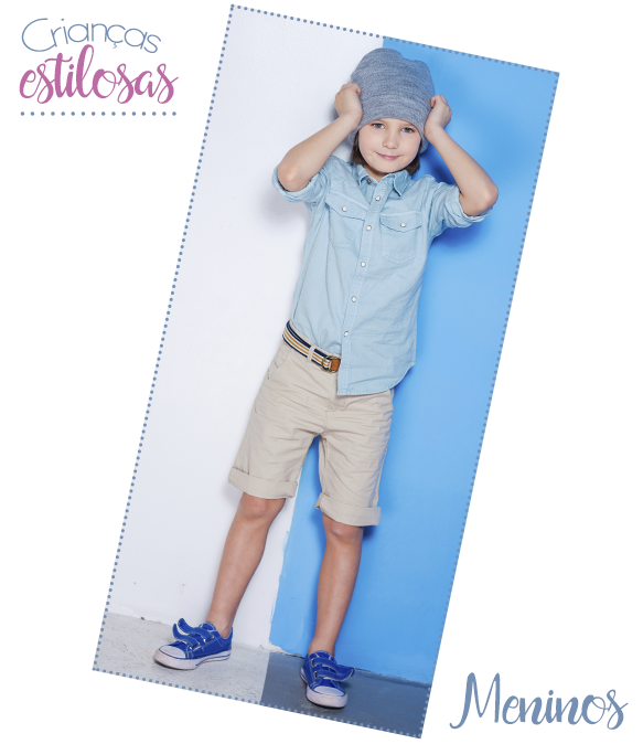 Para os meninos, o look favorito das mamães é camisa com punho dobrado, blazer bege ou marrom, calça jeans, cinto, nos pés um par de oxford e se possível um chapéu ou cabelo com bastante gel. Outra opção é bermuda sarja com suspensório, camisa polo e mocassim.Crianças estilosasPara as meninas as mamães estão apostando mais no estilo rock star com calças ou bermudinhas destroyed (rasgadinhas), regatinhas coloridas, sapatilhas com detalhes metalizados ou tênis de cano médio. Uma segunda opção são o vestidos coloridos com coletes jeans e botinhas de cano baixo.